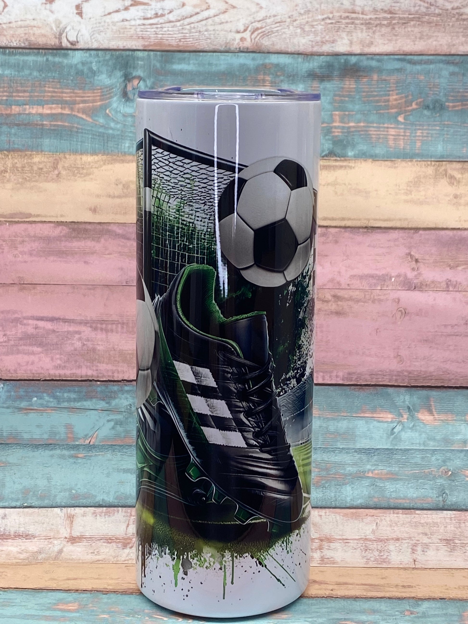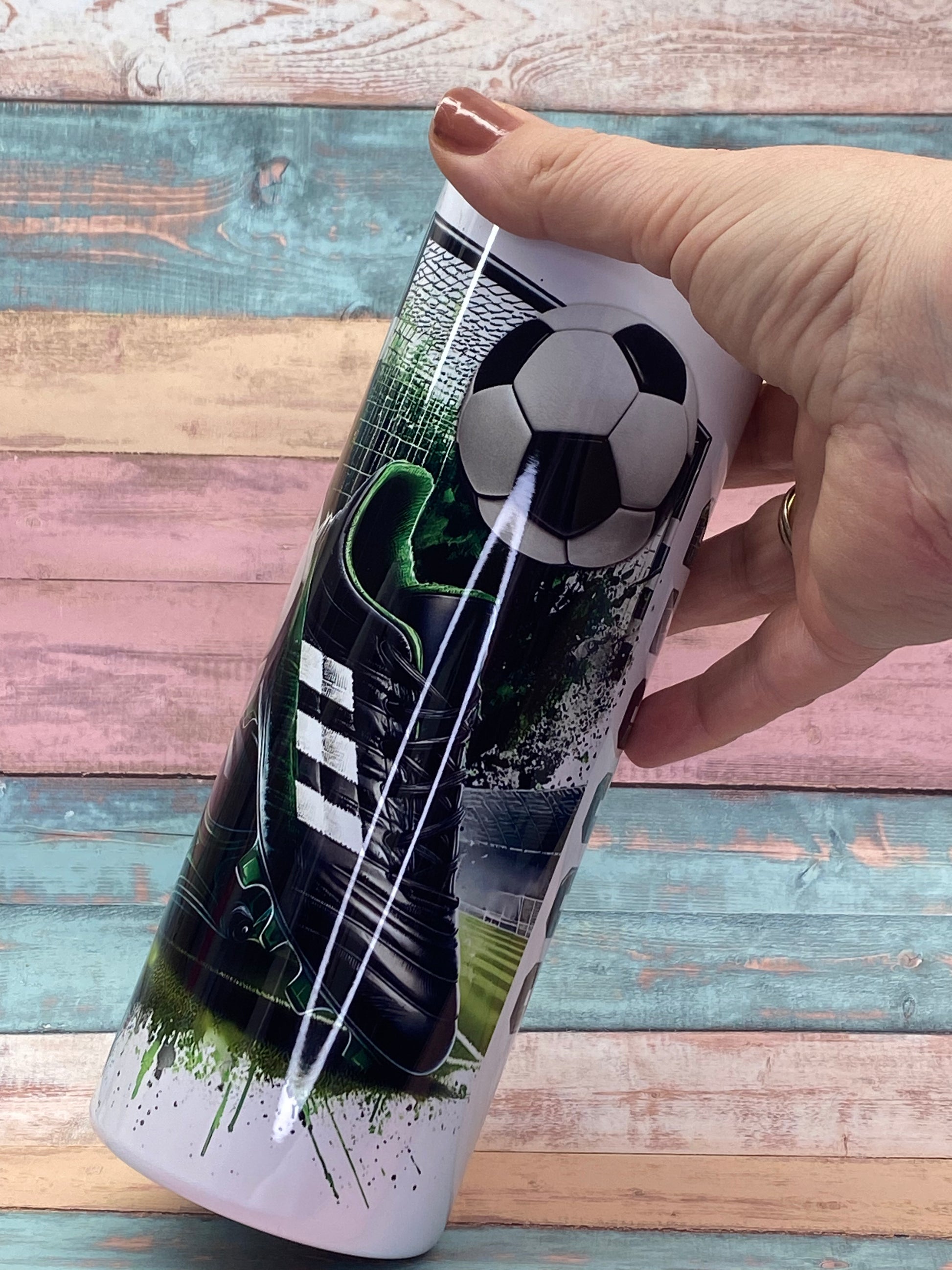 Dieser hochwertige Edelstahl Tumbler im Fußball-Design bringt Stadion-Feeling direkt in deinen Alltag.