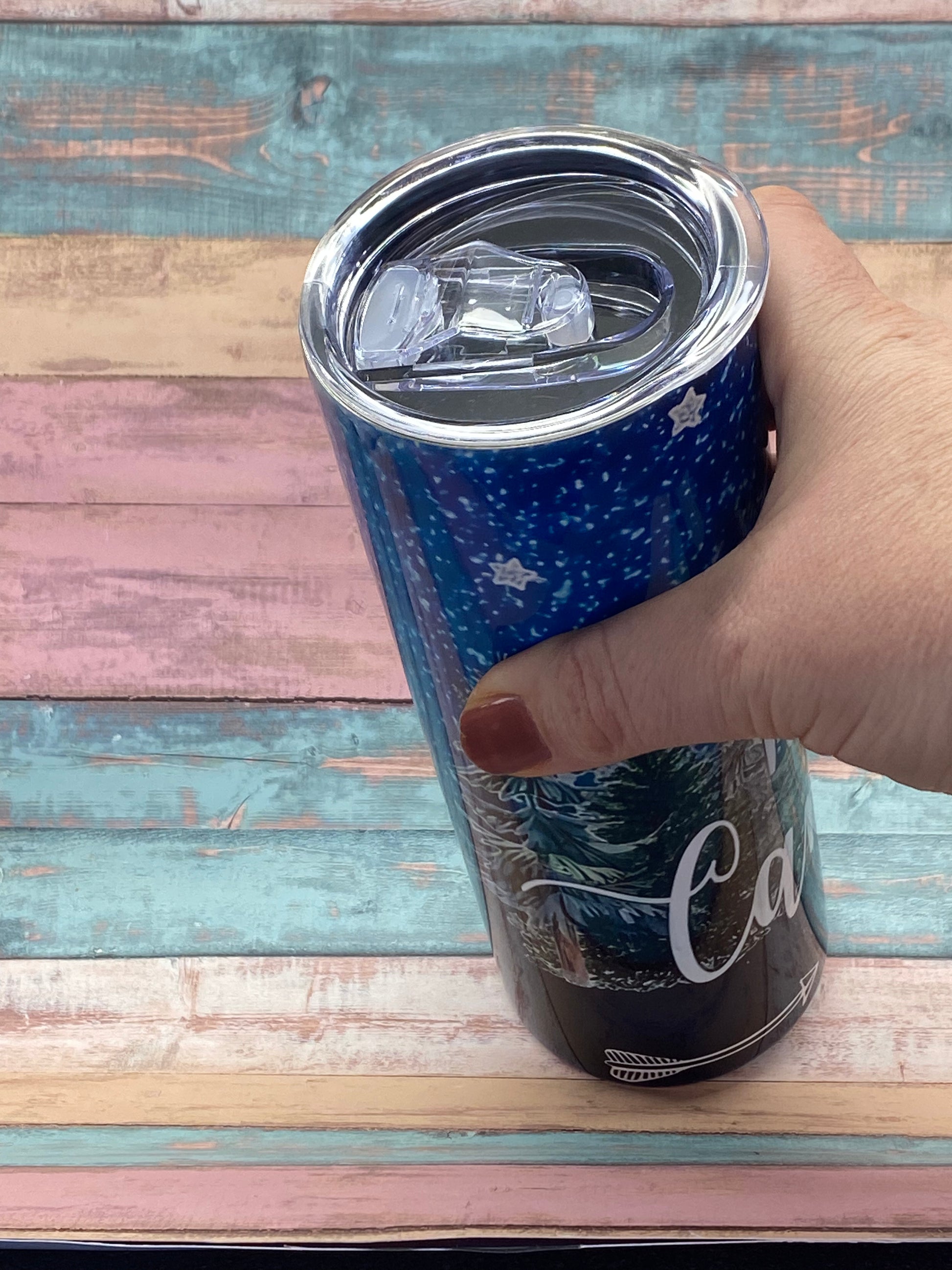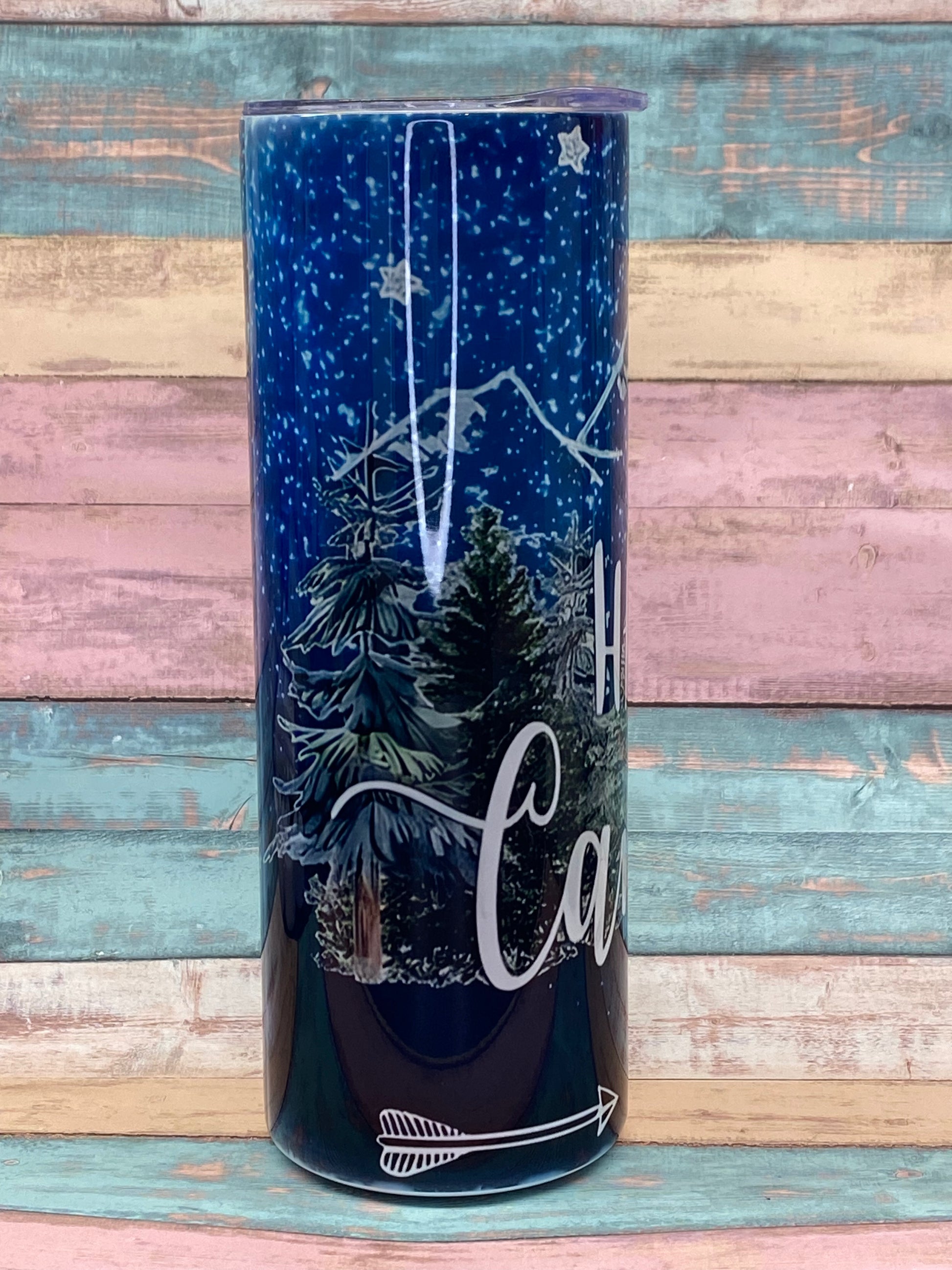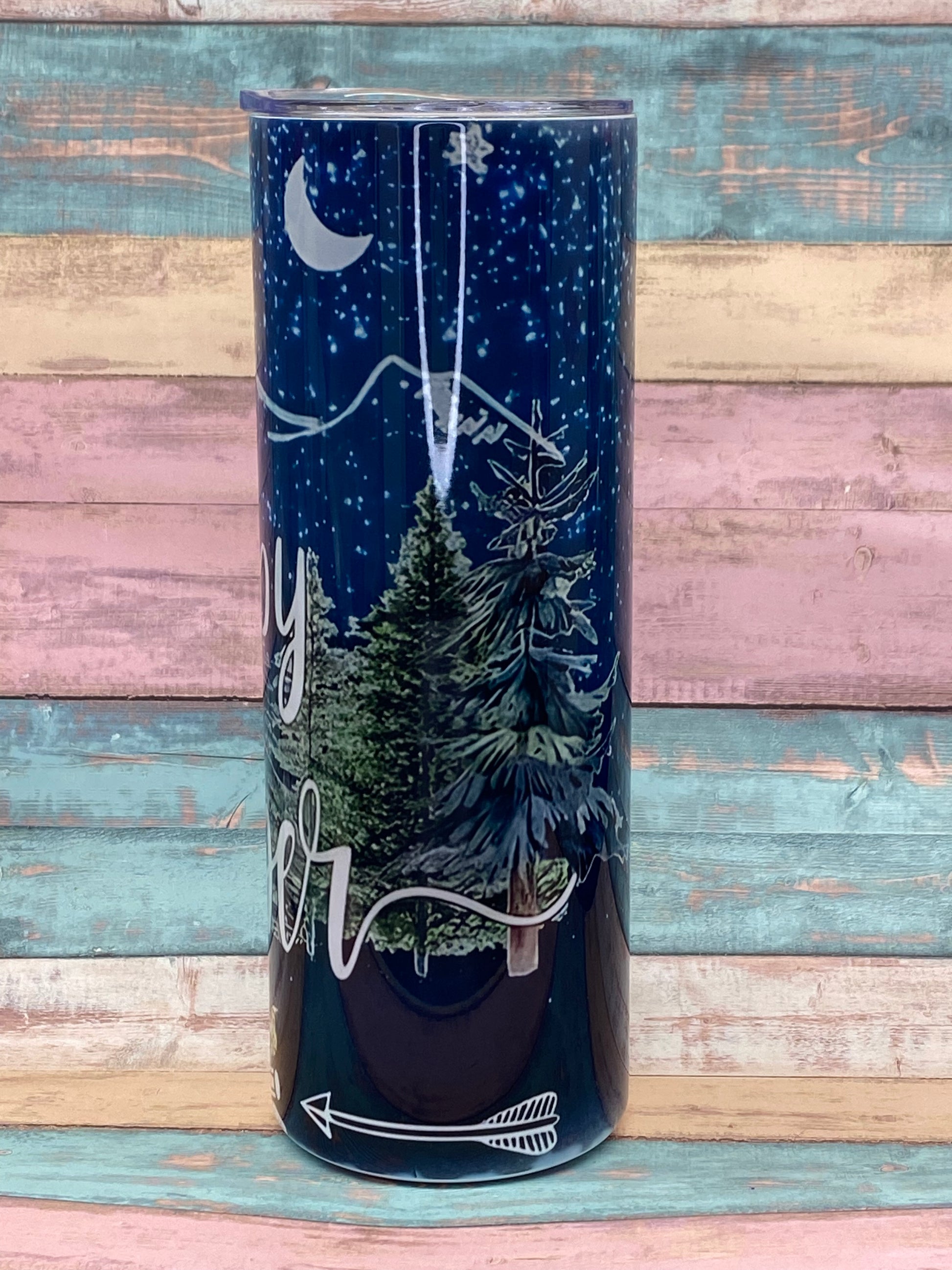 Der Edelstahltumbler „Happy Camper“ verbindet ein stimmungsvolles Nacht-Design mit Wald, Bergen, Sternenhimmel und liebevollen Outdoor-Details. Der Schriftzug Happy Camper macht diesen Becher zum perfekten Begleiter für unterwegs, am Lagerfeuer oder im Alltag.