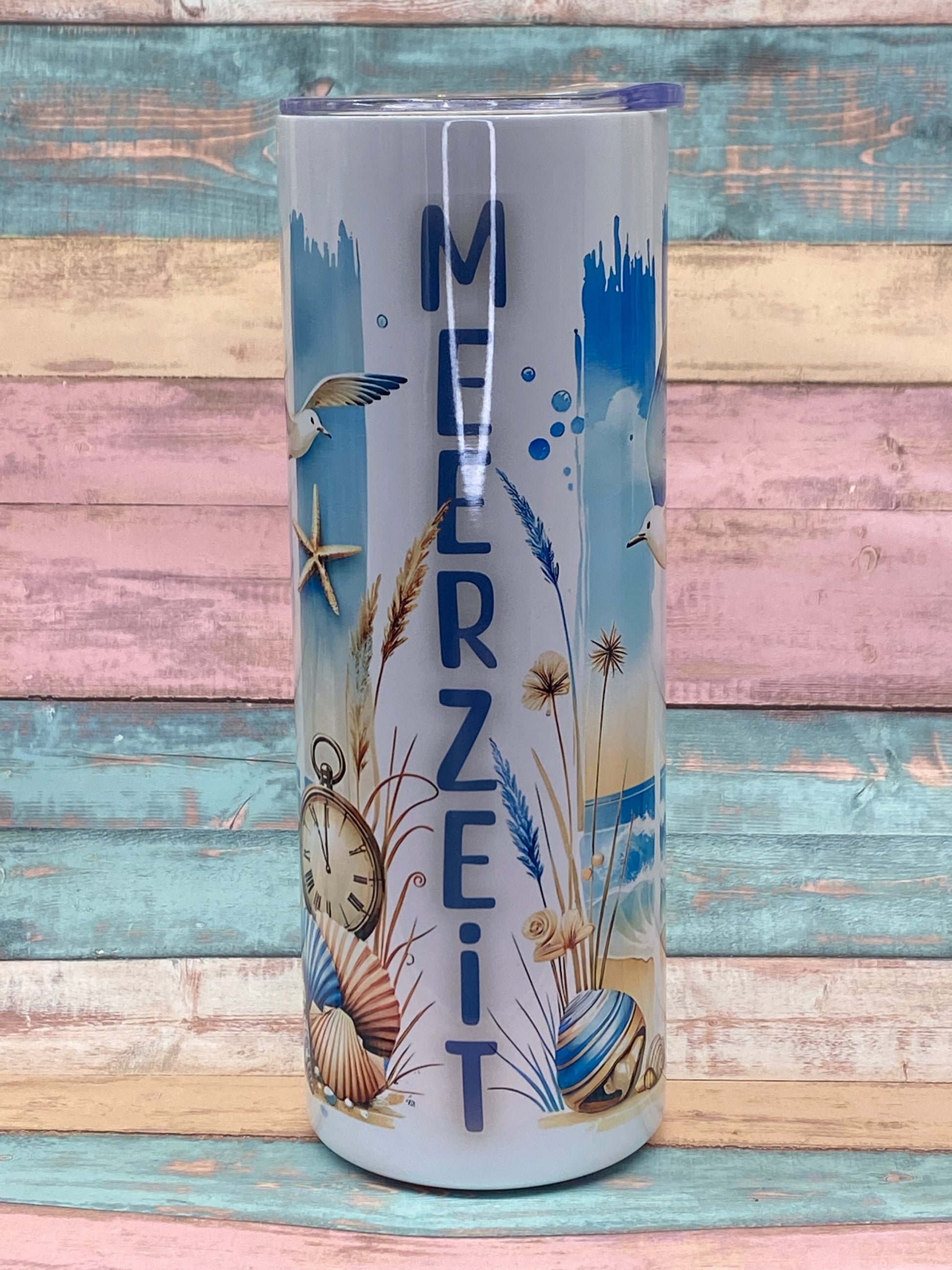 meerzeit, edelstahltumbler, maritim, meerliebe, stranddesign, kaffeebecher to go, thermobecher, geschenkidee, camper lifestyle, urlaubsfeeling, küstenstil